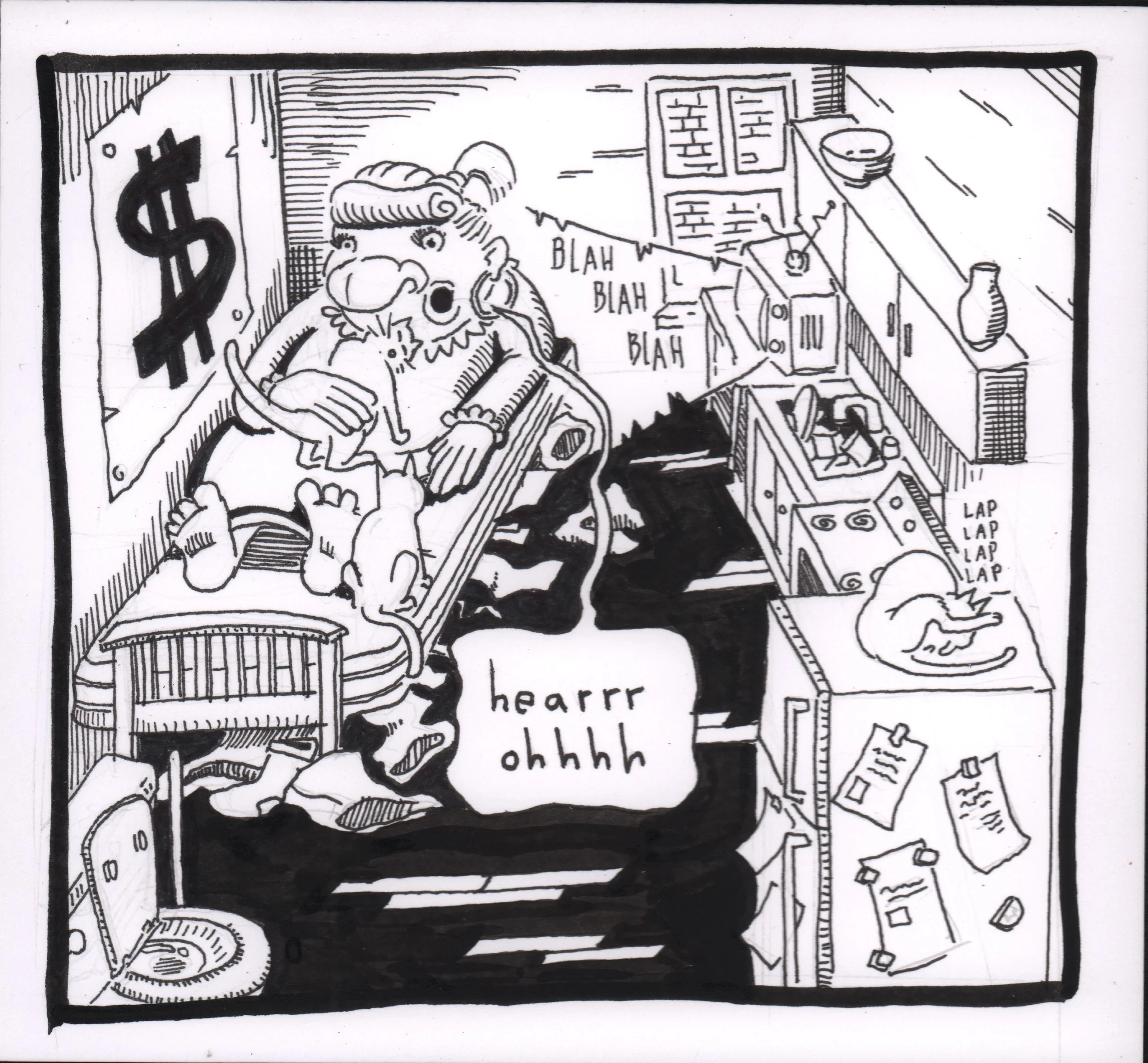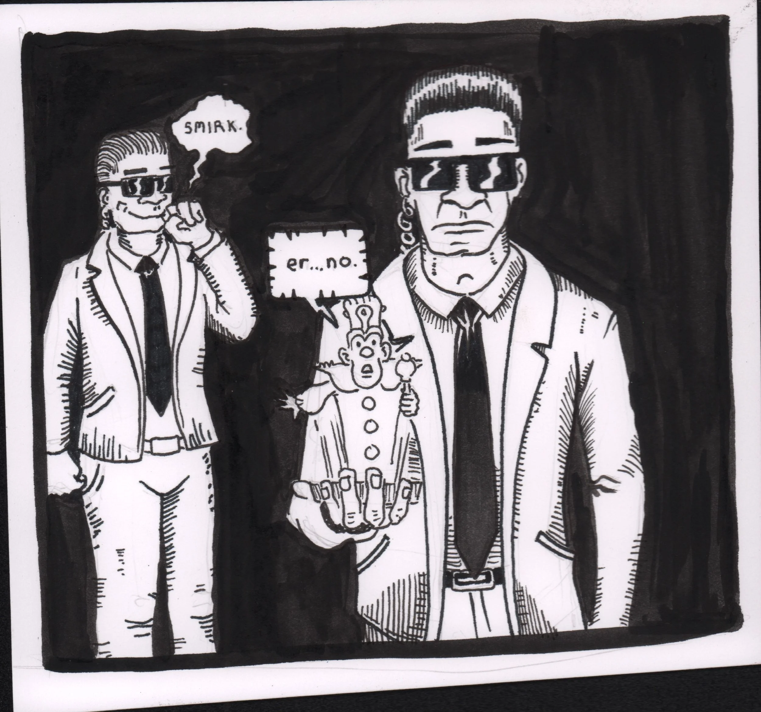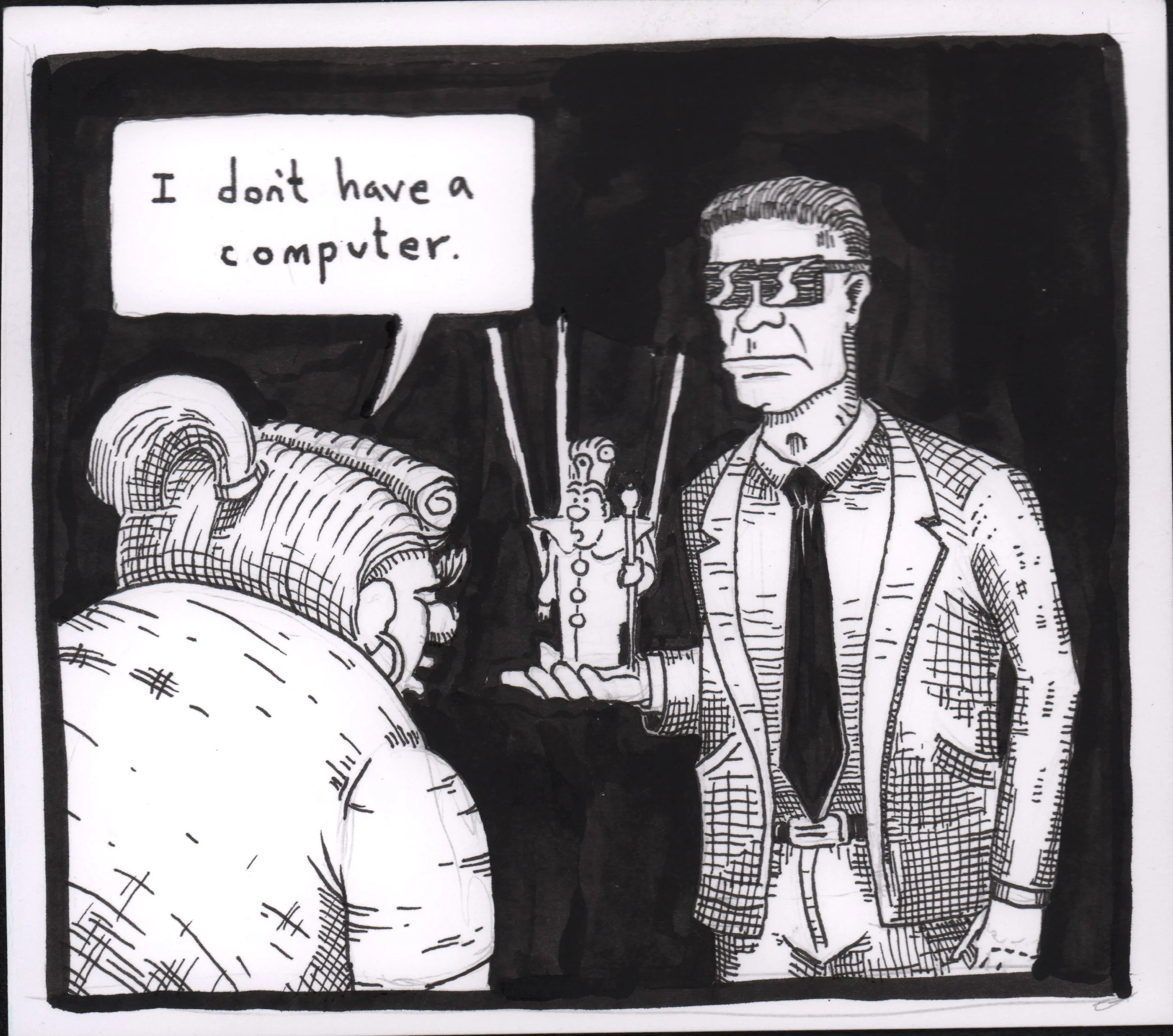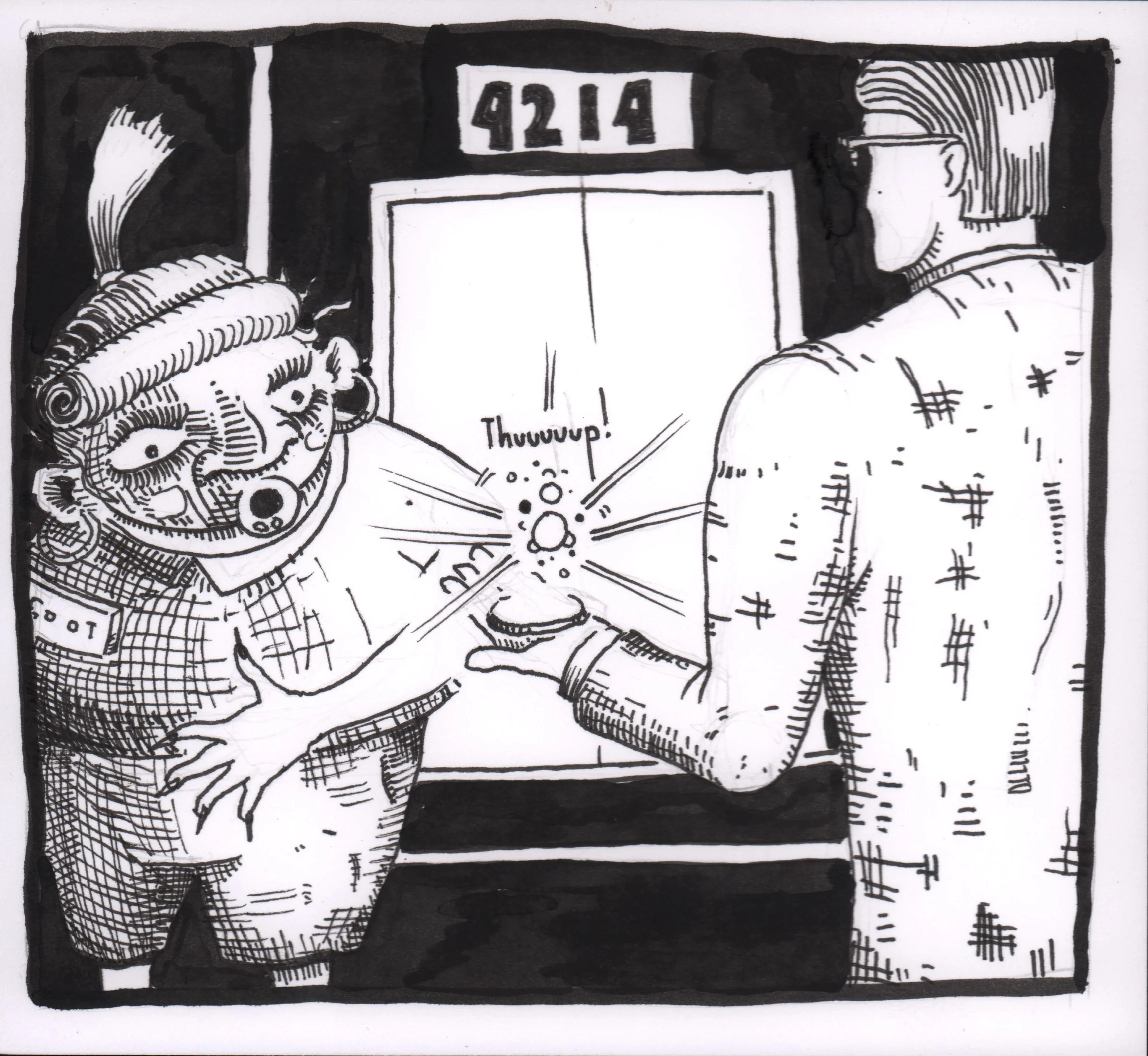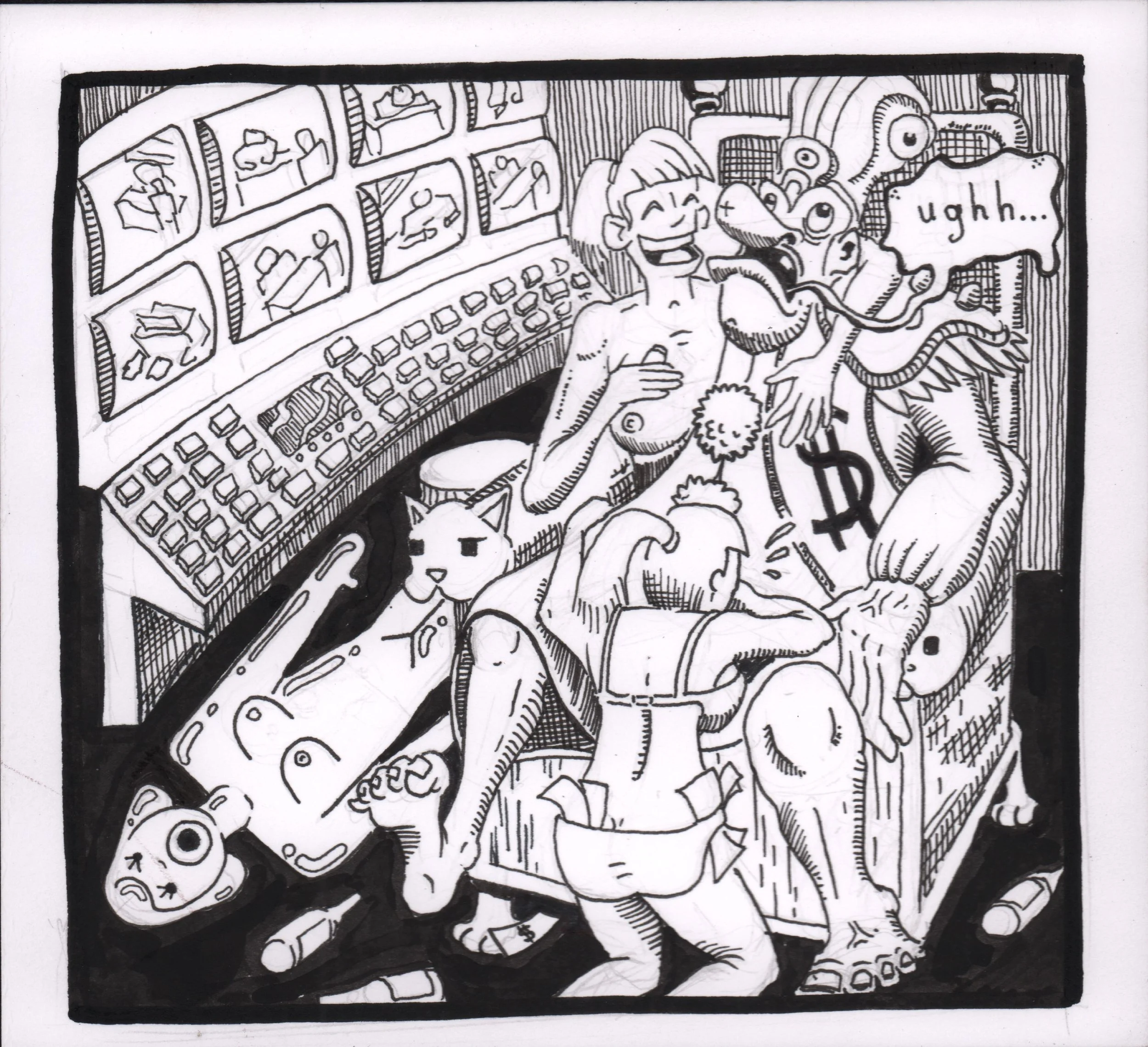 Doing Good was one of the last comics I made with traditional mediums. There are a lot of problems with it. Although I knew where I wanted to take it, I had difficulty getting there. I have since gained a great appreciation for script writing and story boarding and try to resist the urge to start working until I know exactly where I want to take a story. For all its problems this ditty means a lot to me and I hope you enjoy it too.