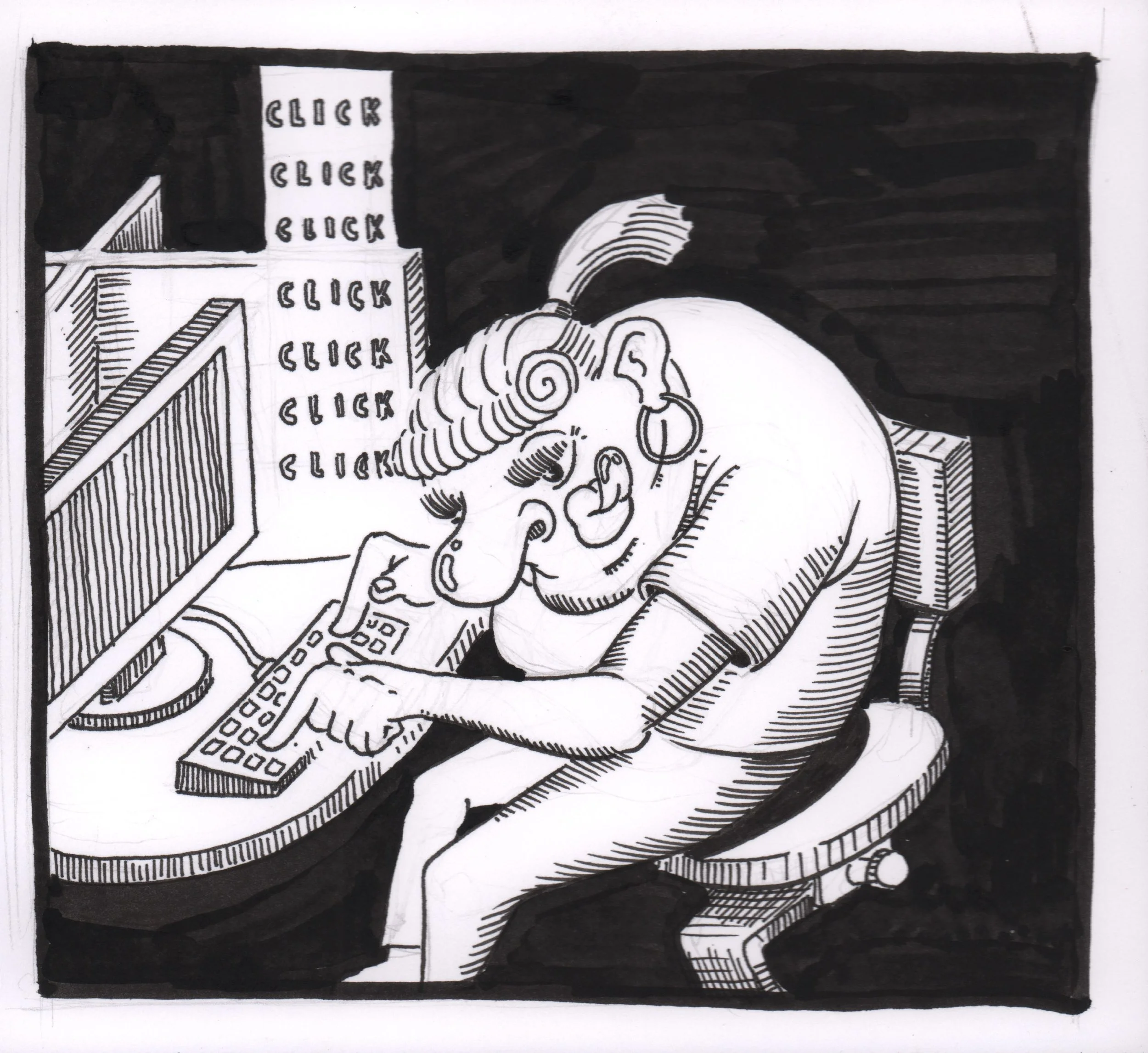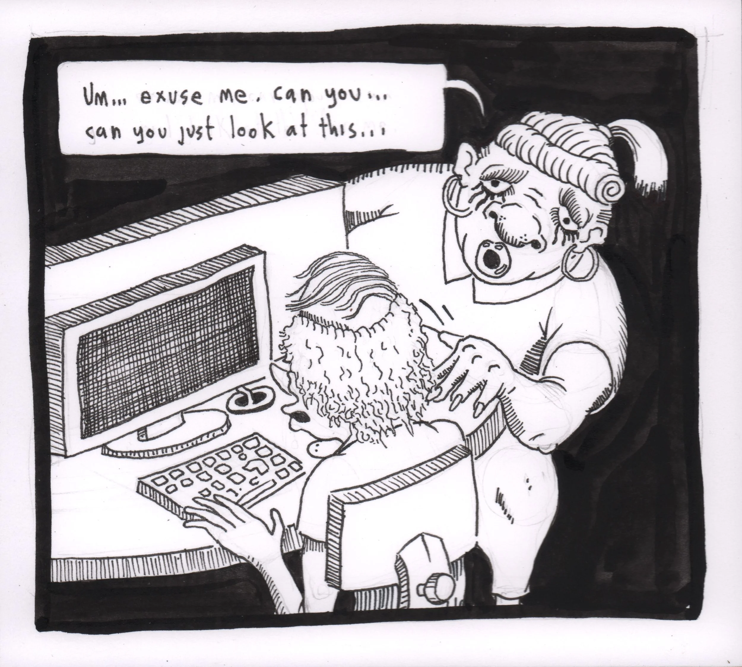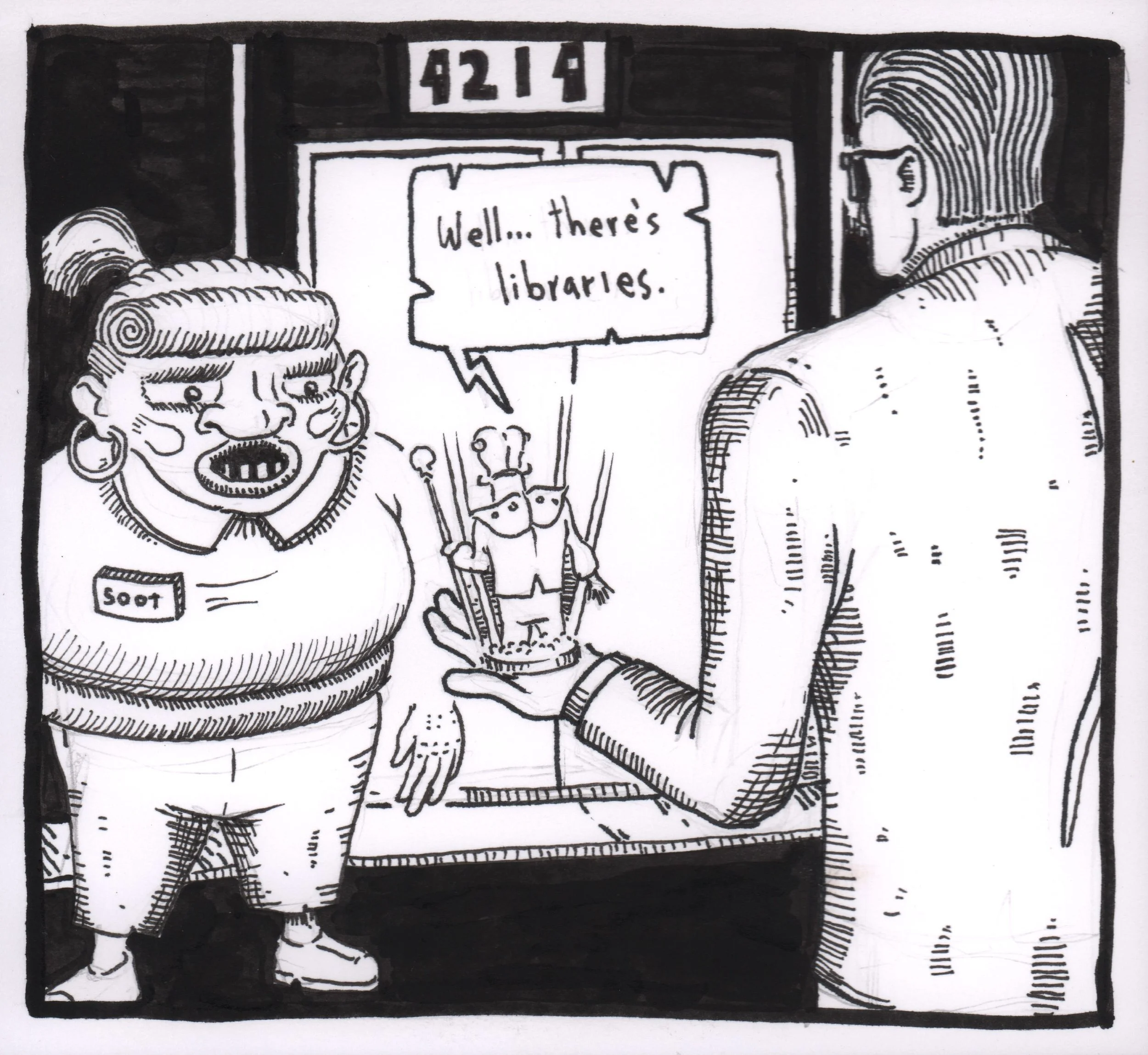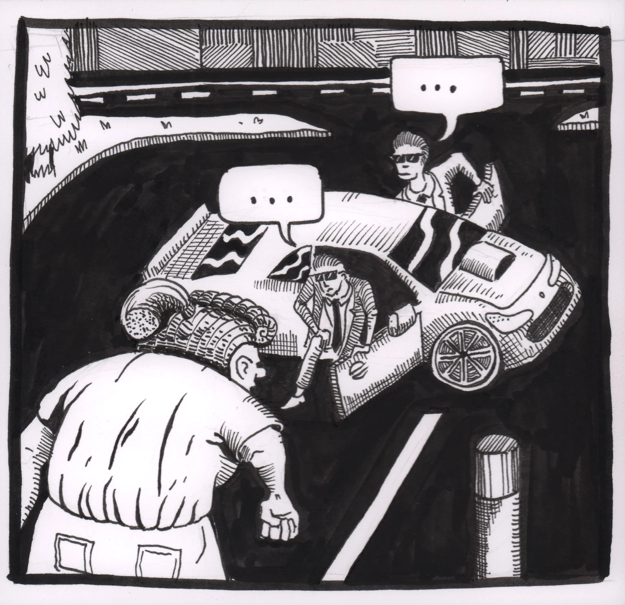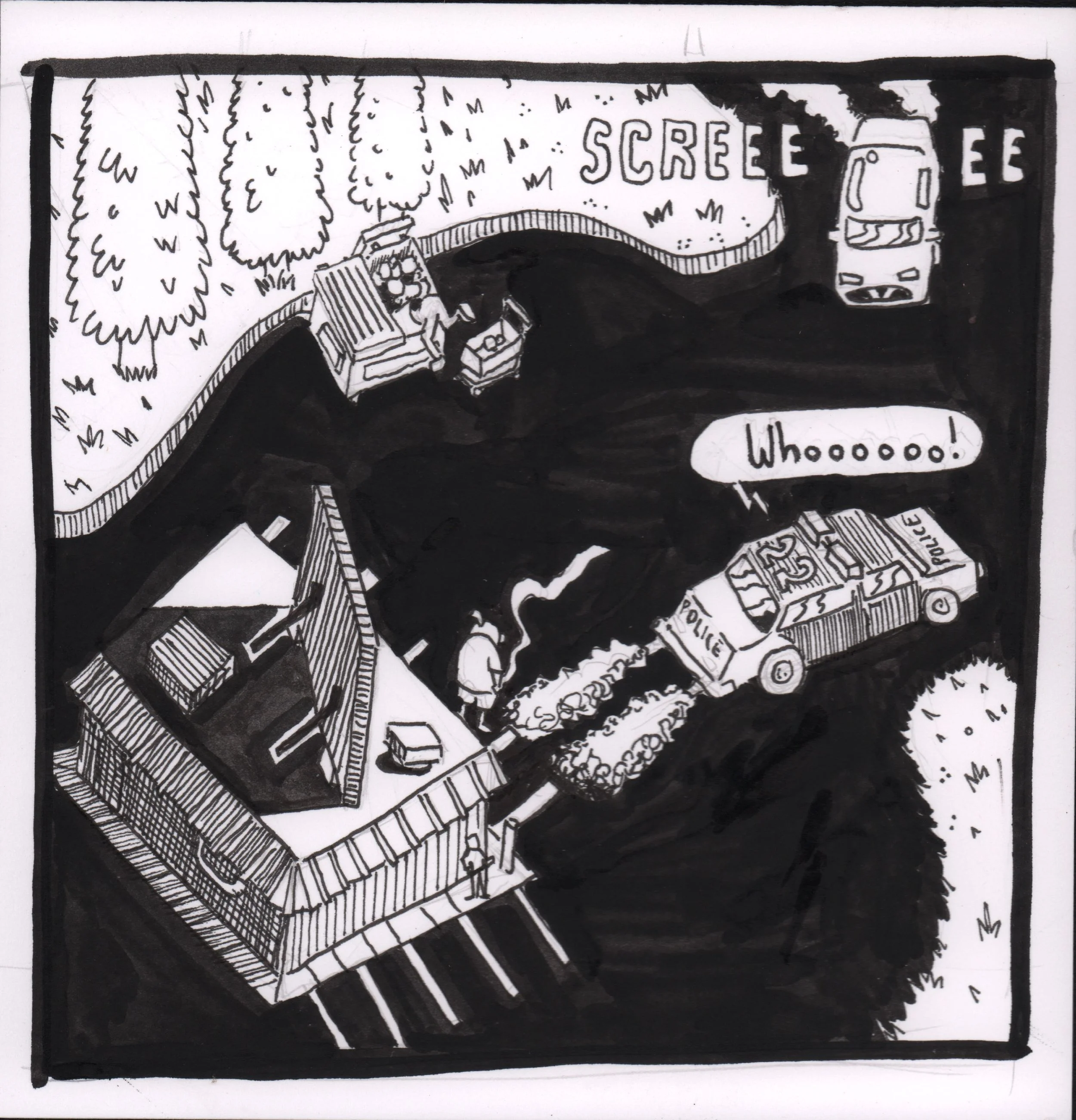 Doing Good was one of the last comics I made with traditional mediums. There are a lot of problems with it. Although I knew where I wanted to take it, I had difficulty getting there. I have since gained a great appreciation for script writing and story boarding and try to resist the urge to start working until I know exactly where I want to take a story. For all its problems this ditty means a lot to me and I hope you enjoy it too.